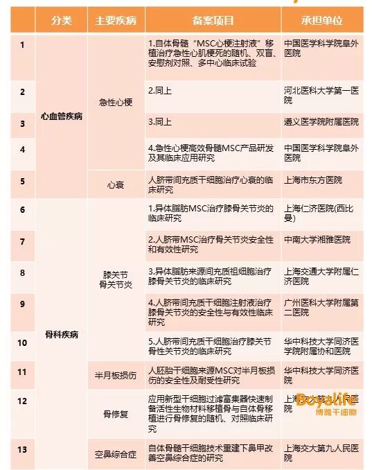 注:干细胞临床研究机构备案信息来自于《中华人民共和国国家卫生健康委员会》网站