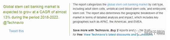 根据全球领先技术研究和咨询机构Technavio发布的最新报告,2018年至2022年,全球干细胞存储市场预计以13%的复合年增长率增长。