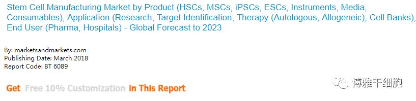 3月,全球第二大市场研究咨询公司Markets and Markets发布了干细胞制造市场调研报告,预测了2018年至2023年全球干细胞制造市场的发展态势。报告指出,2017年全球干细胞制造市场值为101.9亿美元,未来5年预计以6.3%的复合年增长率增长;2023年,全球干细胞制造市场值预计达146.1亿美元。